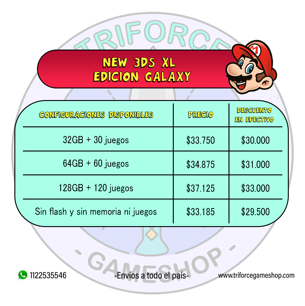 NEW 3DS XL GALAXY TABLA PRECIOS Publicado 23 noviembre, 2021 a las 997 × 1000 en Nintendo 2ds/3ds – Consolas ← Anterior Siguiente →