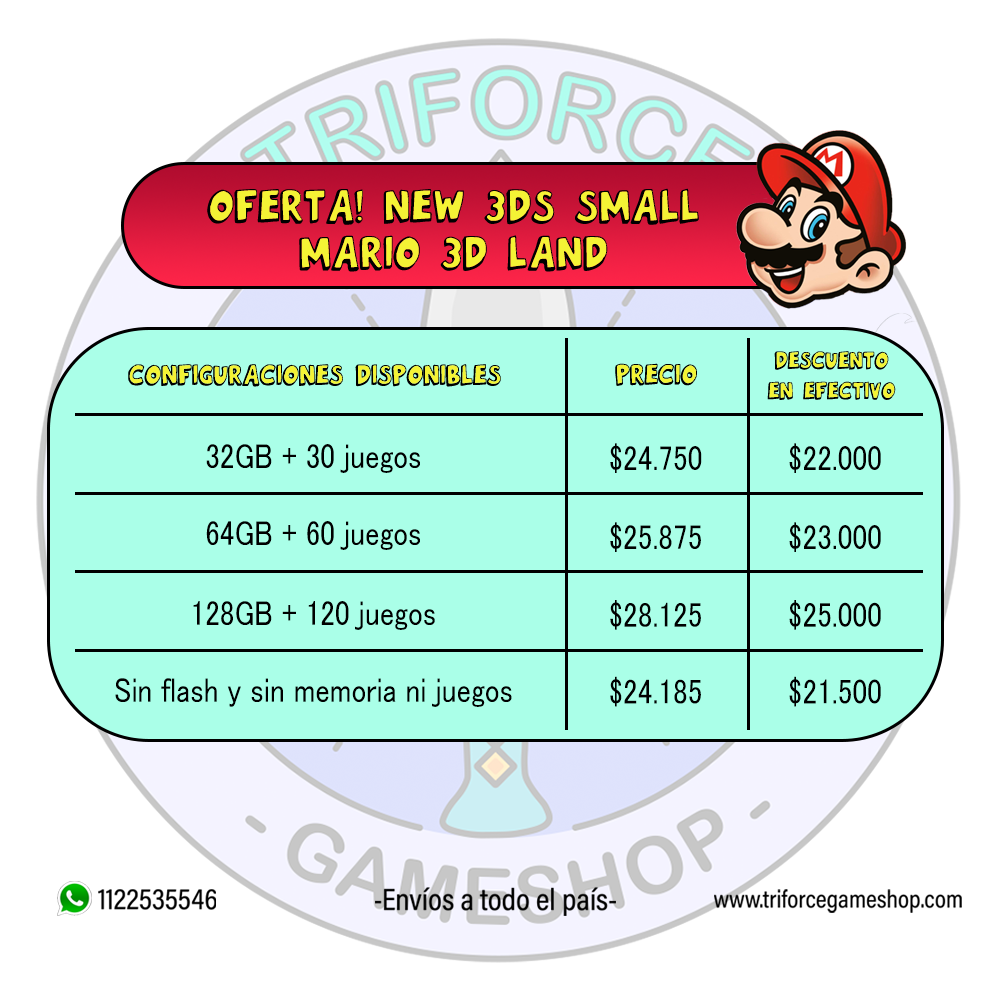 OFERTA MARIO 3D LAND TABLA PRECIOS Publicado 1 diciembre, 2021 a las 997 × 1000 en Nintendo 2ds/3ds – Consolas ← Anterior Siguiente →