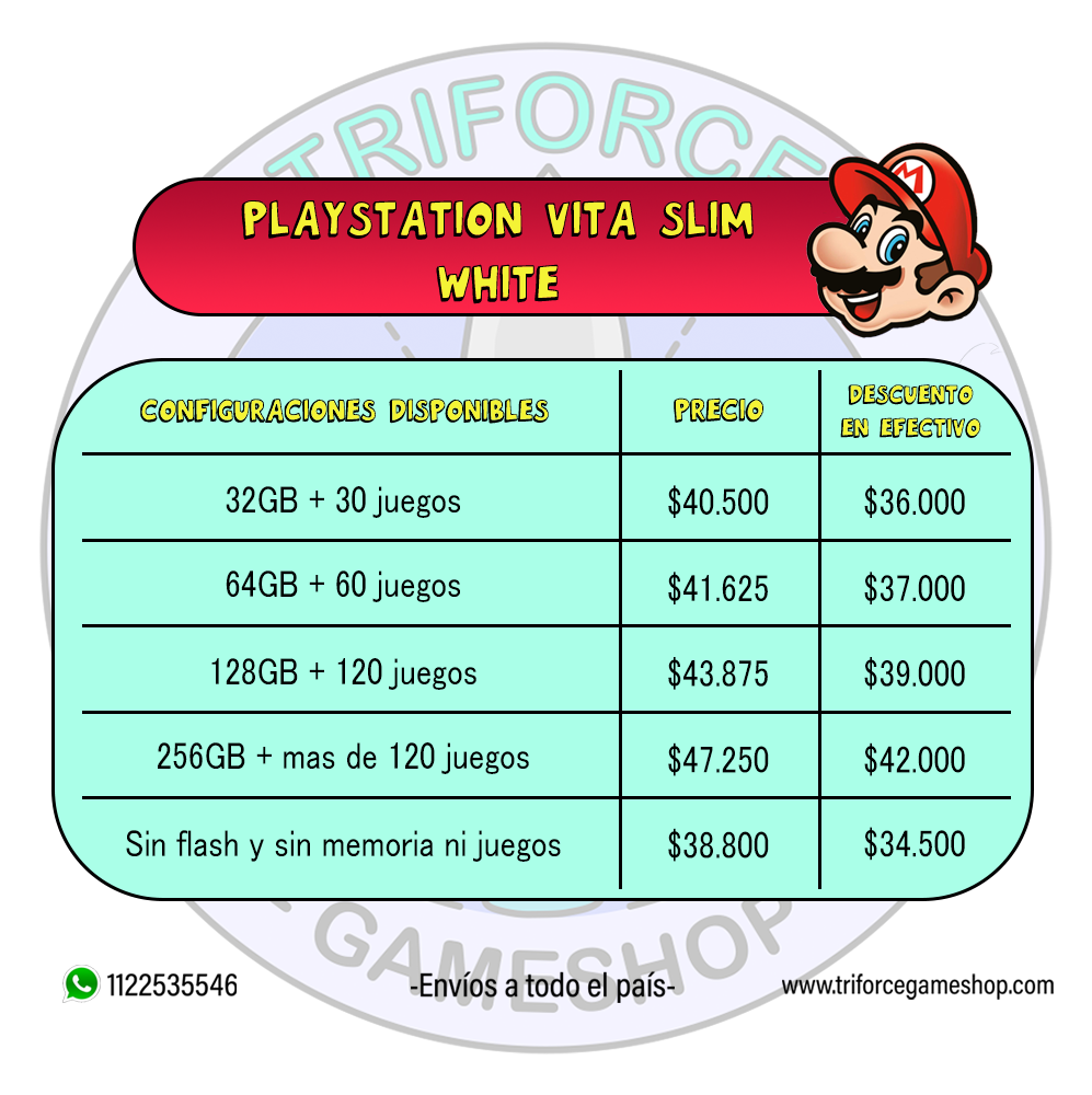VITA SLIM WHITE TABLA PRECIOS Publicado 29 noviembre, 2021 a las 997 × 1000 en Playstation Vita – Consolas – juegos y accesorios ← Anterior Siguiente →